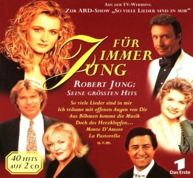 Robert Jung ist eine deutsche Musiklegende! In 70 Lebensjahren schrieb er mehr als 3.000 Lieder. Die Liste der Interpreten, die Jungs Lieder zum Erfolg führten, liest sich wie ein europäisches Musiklexikon. Im Jahr 1997 ehrt das Fernsehen ihn mit einer eigenen Show, in der berühmte Interpreten seine schönsten Lieder vorstellen: “So viele Lieder sind in mir” (ARD, 11.Dezember 1997) Die Doppel-CD “Für immer Jung” ist eine Hommage an den Texter/Komponisten Robert Jung und vor allem an seine unvergesslichen Hits.
